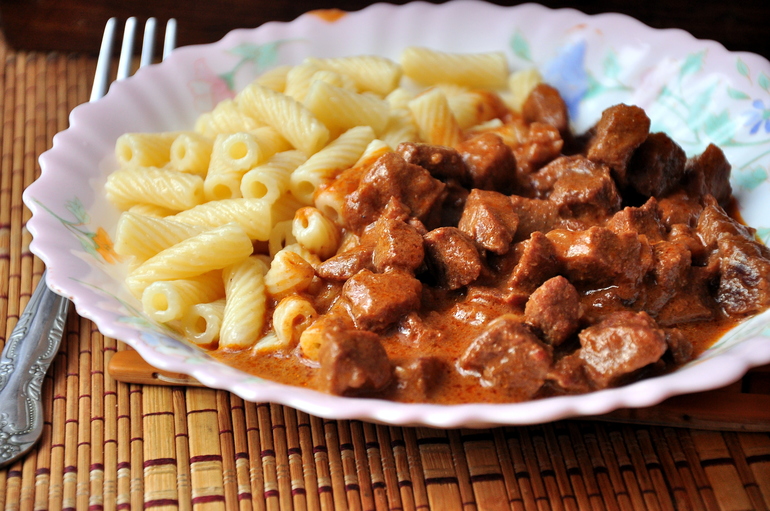 Отличный получается гуляш!)Пюре и макароны для такого блюда - лучшие друзья!)