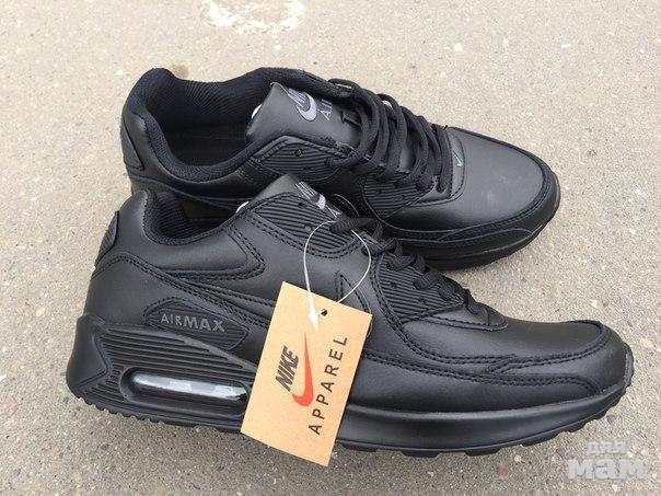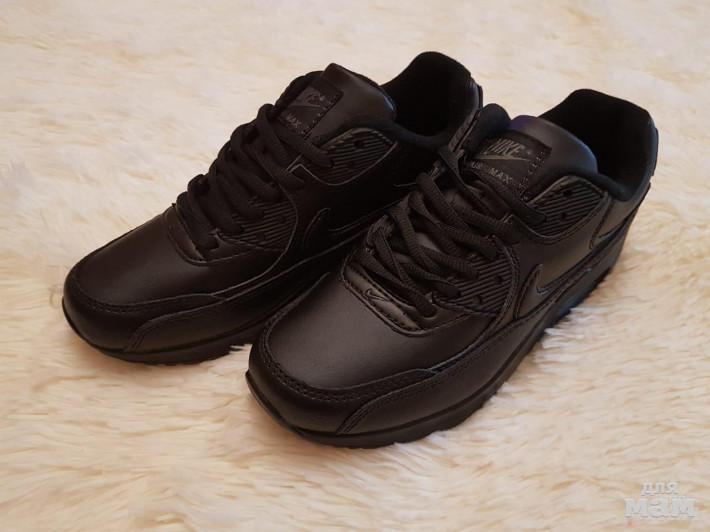 Кроссовки НАЙК АЙРМАКС 90 ЖЕНСКИЕ - натуральная кожа ЧЕРНЫЕ