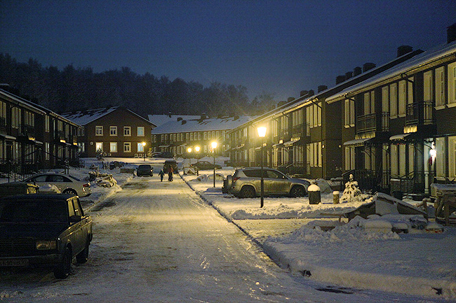 Фотография сделана зимой, на улице облачно, начинает темнеть, баланс