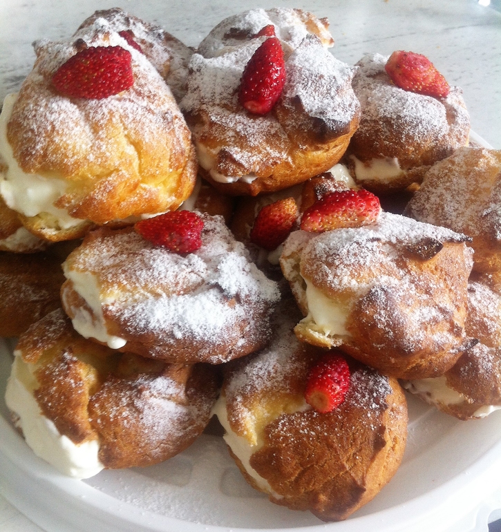 Р.S. Моя дочка очень любит, когда внутри ягодка попадается, поэтому я еще и в профитроли ягодку кладу.