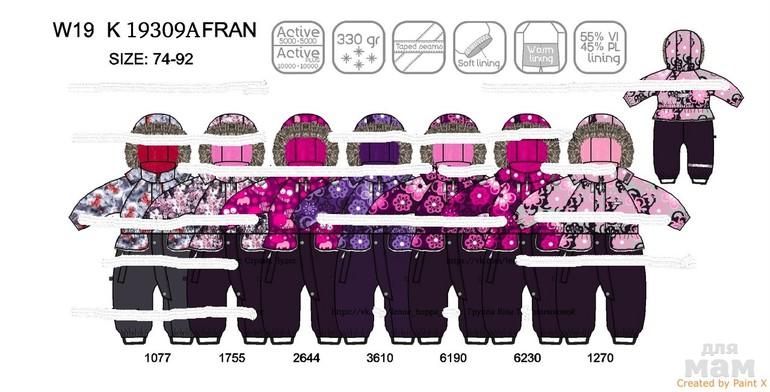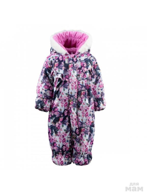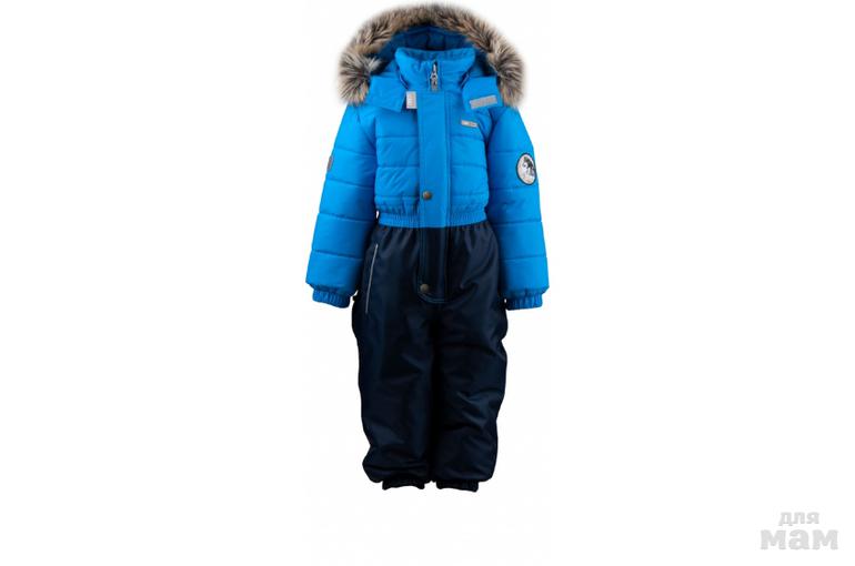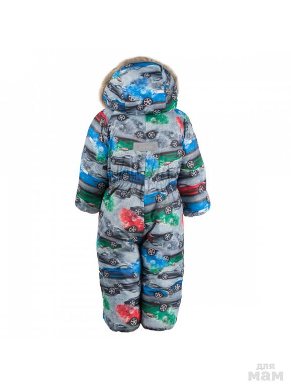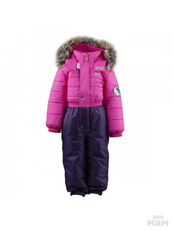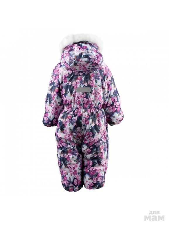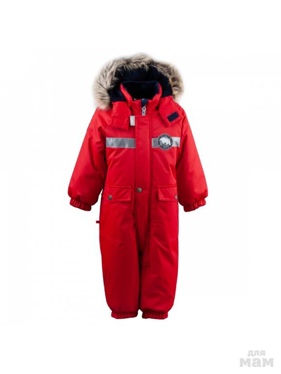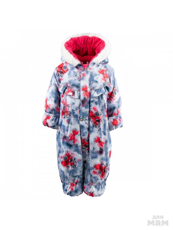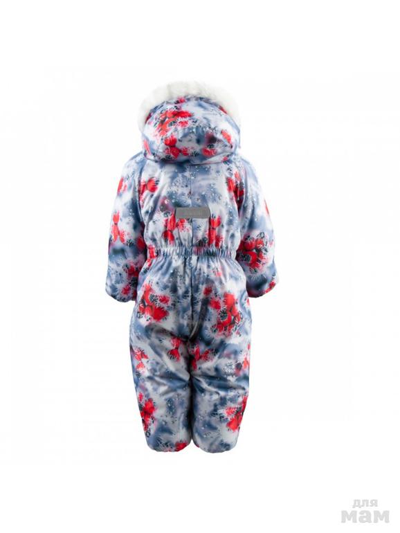 Очень теплый и легкий комбинезон (можно носить до -30 градусов мороза), выполнен в ярких цветах из ткани Active 5000/5000 (ветро- и водонепроницаемая, грязеотталкивающая, но дышащая) из комбинированной ткани: сверху гладкая, нижняя часть в мелкий рубчик, более износостойкая, с проклеенными швами. Комбинезон утеплен толстым слоем утеплителя, подкладка в нижней части спинки дополнительно утеплена велюром. Модель застегивается на молнию, которая защищена ветрозащитной планкой. Капюшон с утеплителем, опушка искусственный мех. Капюшон отстегивается. Имеются два кармана на молнии. На спинке по талии резинка. Отделка капюшона, внутренней части воротничка и резинки рукавов - велюр. Имеются светоотражающие элементы. Низ брюк на резинке, со штрипками, без снегозащиты.