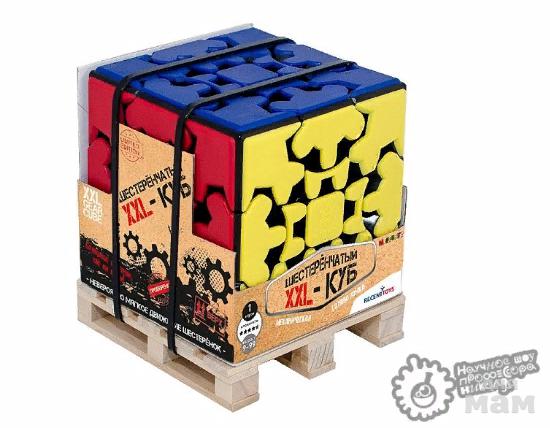 Подарочная головоломка размером 12 см (!) на деревянной мини-паллете. Без наклеек: вместо них здесь цветные пластиковые плитки, красивые и долговечные. Весь механизм, все шестеренки расположены на виду, что придает кубу крайне загадочный вид. Безусловно, головоломка напоминает кубик Рубика, хотя по сложности она значительно проще. Шестеренки вносят свой вклад в особенности сборки, ведь тут потребуется целых 12 поворотов на 90º, чтобы провернуть весь кубик и вернуть в изначальное положение. В целом же, большинство поворотов этой головоломки потребуют вращения на 180°, ведь привычные по кубику Рубика повороты на 90º будут приводить Gear Cube в промежуточное состояние, не позволяющее вращать головоломку в других плоскостях. Так что для продолжения сборки потребуется завершить полный 180° поворот в выбранной плоскости.
