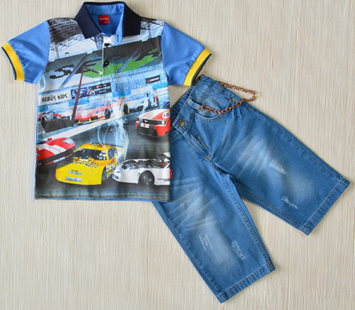 Верх из мягкого трикотажа и юбка из облегченной джинсы.