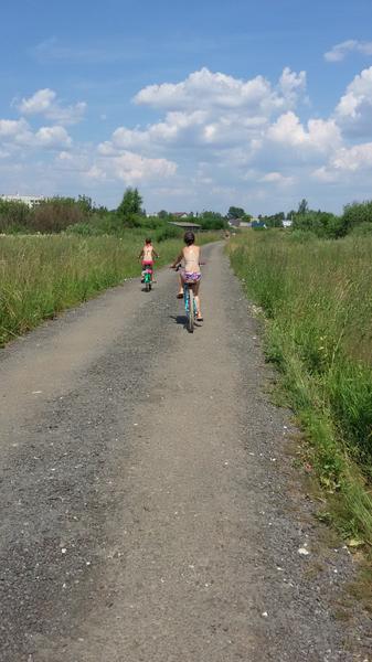 Маленькая научилась кататься на двухколесном велосипеде, доставшемся ей по наследству от старшей, просто в один день! Показали как-села и поехала! Теперь велосипед для нас на даче-преимущественный вид транспорта))