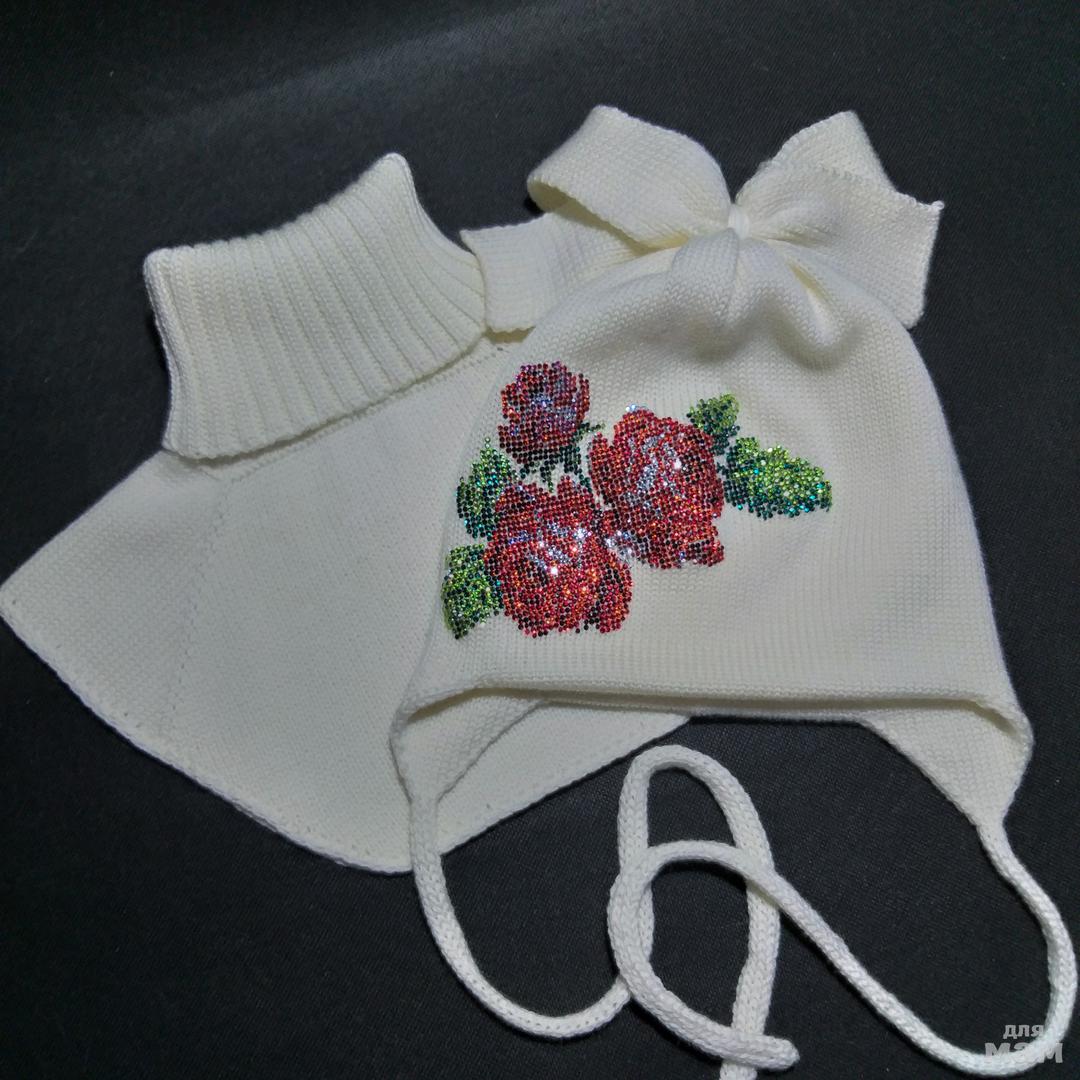 Вяжу на заказ шапочки с ручным декором из страз под любые курточки, пальтишки, коминезончики