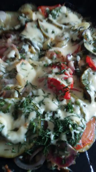 Наше с мамой любимое летнее блюдо)... Наконец, наступила пора, когда можно собирать урожай почти всех овощей)... Из покупного только сыр... Кабачки, лук, болгарский перец, помидор, кинза... Приготовлено в духовке. Едим его почти каждый день) И не надоедает... про мясо даже не вспоминаем)