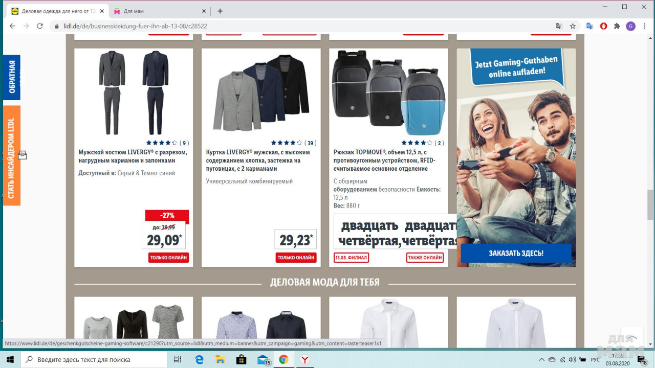 акция здесь https://www.lidl.de/de/businesskleidung-fuer-ihn-ab-13-08/c28522
