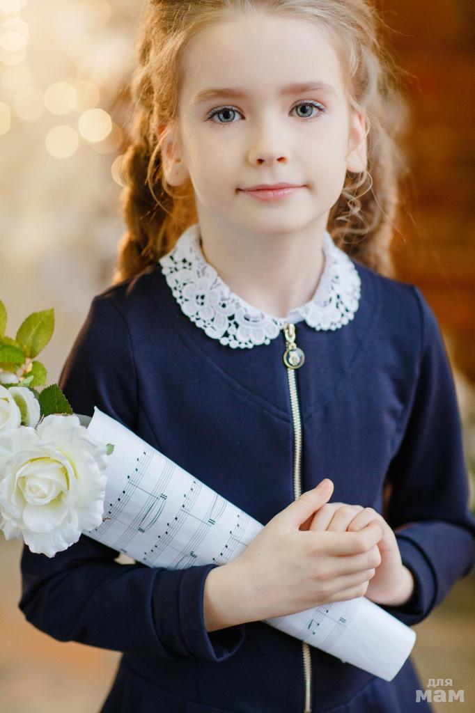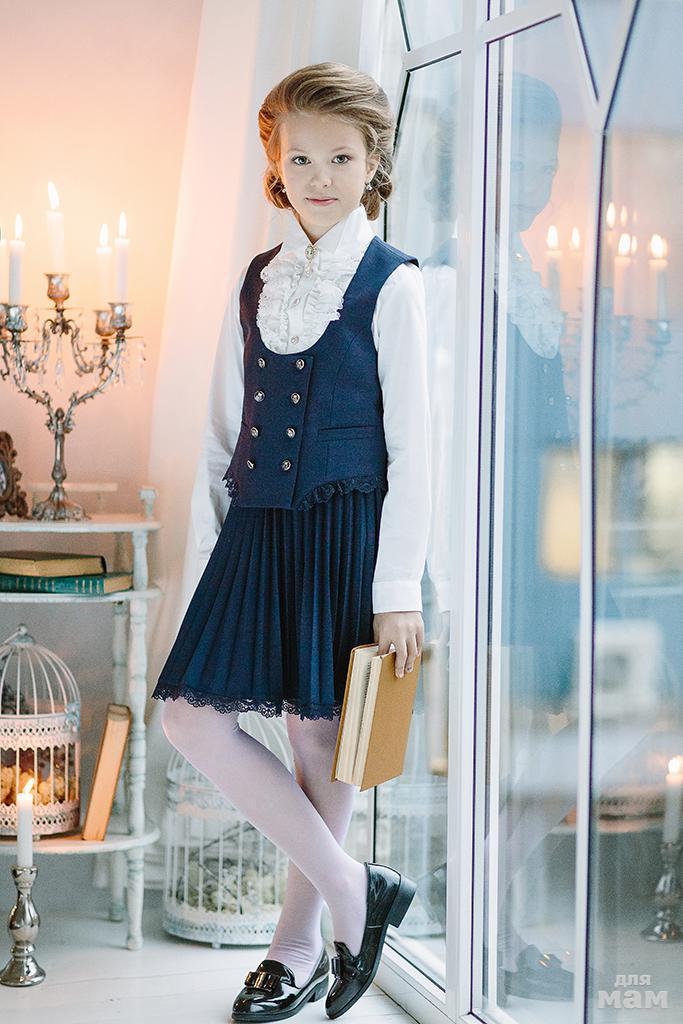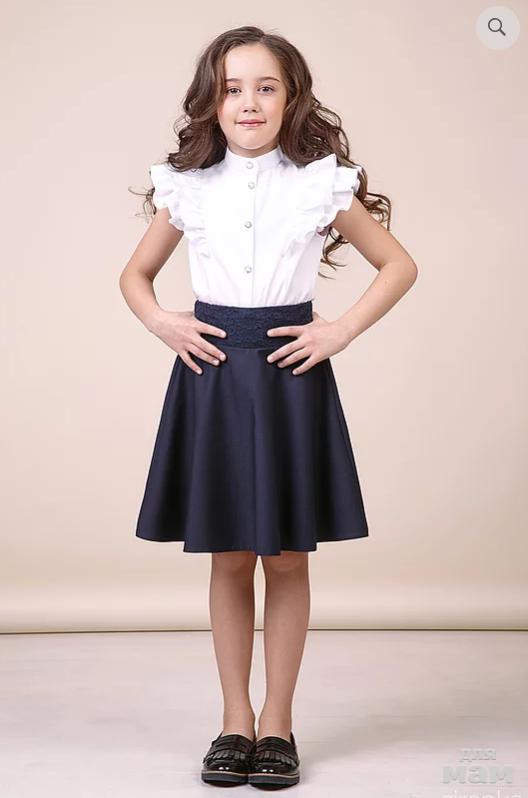 Юбка полурасклешённого кроя. Сзади - комфортная резинка. По низу изделие декорировано воланом из кружева. Есть подкладка. Отличный вариант для ежедневного использования или для линейки.