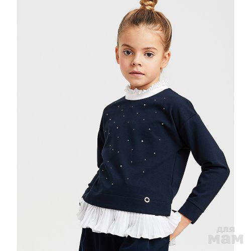 Джемпер для девочки выполнен из набивной кулирки с эластаном.