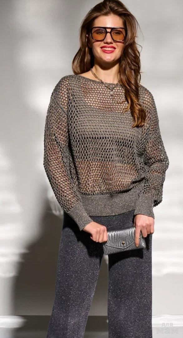 Вырез горловины немного расширенный, круглый.46% акрил, 12% мохер, 6% шерсть, 17% ПА, 19% метал Фибра