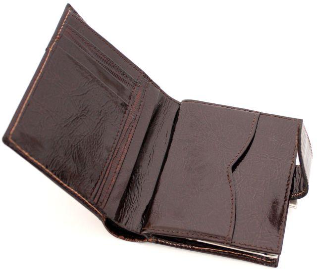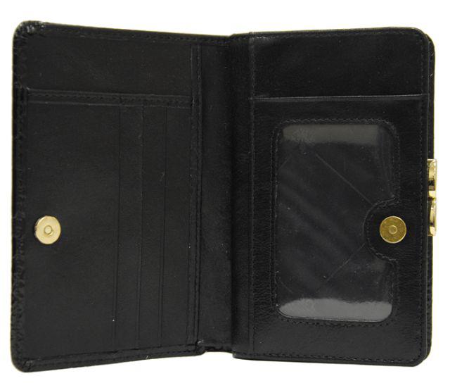 Портмоне Franchesco MariscottiПортмоне в два сложения закрывается на кнопку. Внутри одно отделение для купюр, 4 кармашка для визиток, прозрачный пластиковый кармашек, внутри монетница закрывается на рамку.