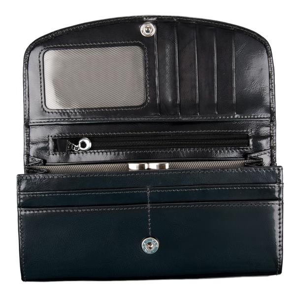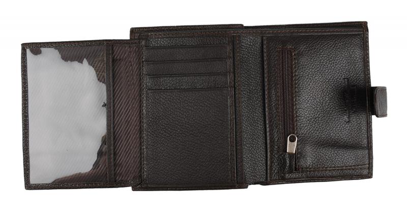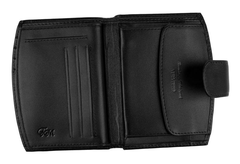 Портмоне Franchesco MariscottiПортмоне без цупферной застежки, внутри 2 отделения для денег,4 отделения для кредитных карт,дополнительная боковая откидная панель с сеткой с 6 отделениями на цупферной застежке(закрывается на кнопке),имеется потайной карман на молнии, монетник с клапаном на кнопке.