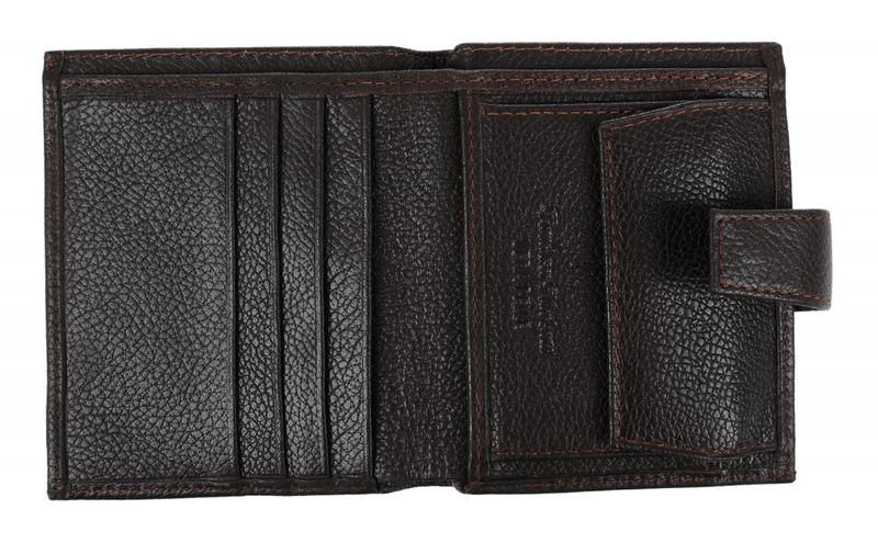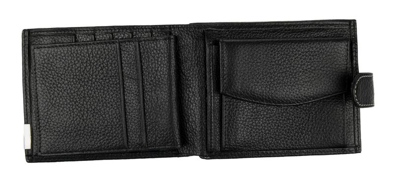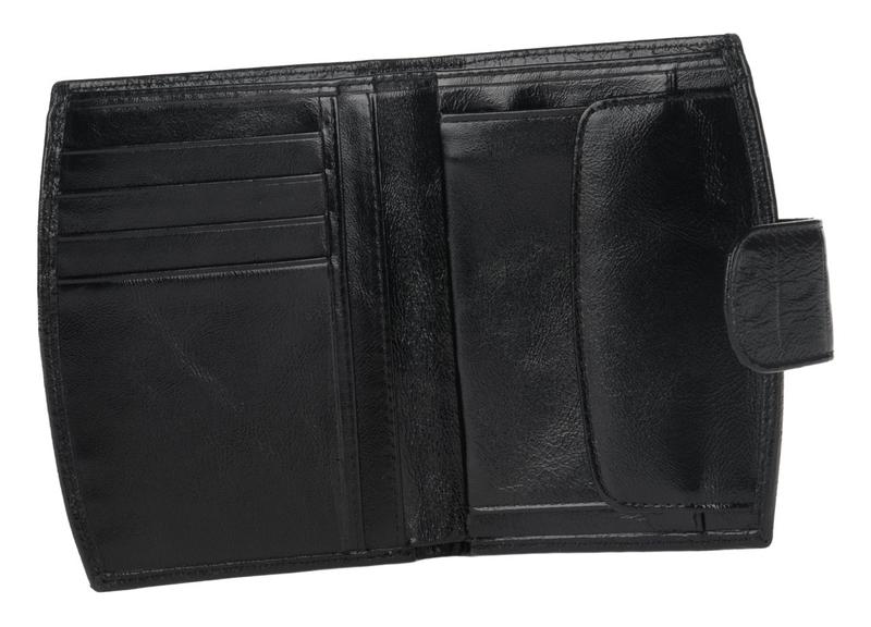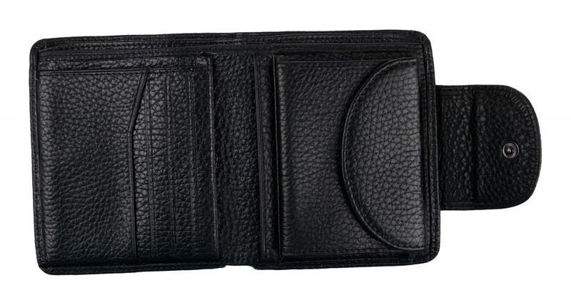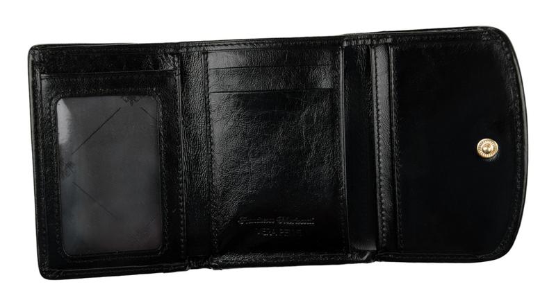 Портмоне ConstantaКошелек в 2 сложения. Внутри 1 отделение для купюр. На правой половине большая монетница на металлической рамке. На левой половине откидная стенка с карманами-сеткой с обеих сторон. Пот стенкой нарезка под карты и 2 кармана. Закрывается на кнопку.