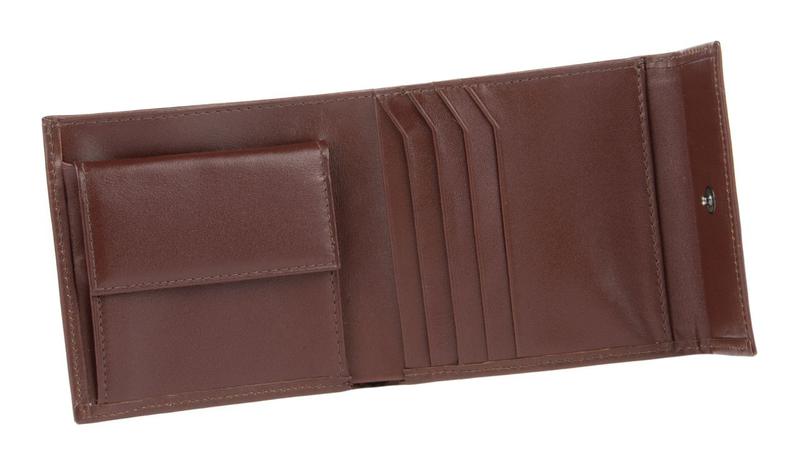 Портмоне с отделением для купюр с перегородкой, монетник с клапаном на кнопке, с 2-мя визитницами (одна из которых откидная + пластиковый карман).