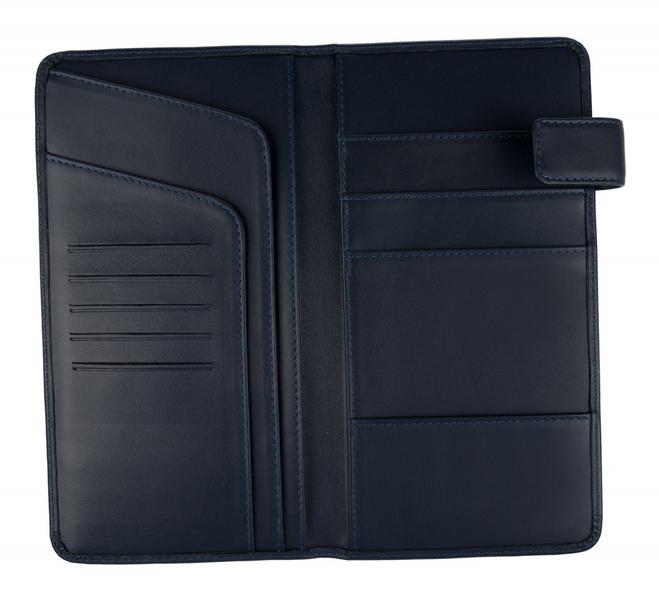 Портмоне ConstantaЗакрывается на кнопку. Внутри 1 отделение для купюр, монетник на молнии, 5 кармашков для бумаг. На клапане кармашек для бумаг, прозрачный кармашек, 4 кармашков для кредиток. Снаружи сзади открытый карман для бумаг.