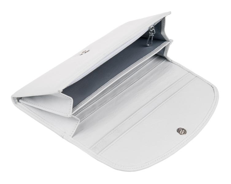 Портмоне ConstantaЗакрывается на магнитную кнопку. Внутри 2 отделения для купюр, 2 кармашка для бумаг, кармашек-сеточка и 2 кармашка для кредиток. Снаружи сзади монетник на рамке.