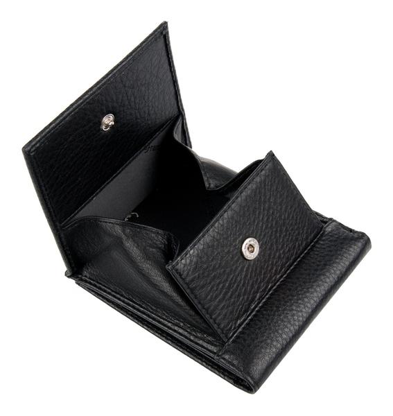 Портмоне Franchesco MariscottiПортмоне в два сложения.Внутри два отделения для купюр.Визитница для кредитных карт.На передней стенке монетница,закрывается на кнопку.