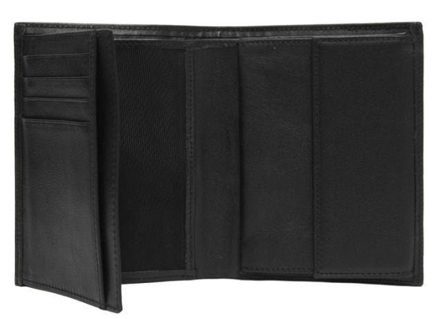 Портмоне BaronПортмоне вертикальное без цупферной застежки.Внутри одно отделение для денег, 1 отделение с сеткой для бумаг,откидная панель с 4 отделениями для кредитных карт, монетник с клапаном на кнопке.