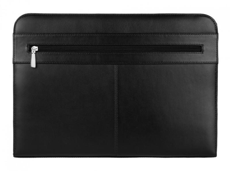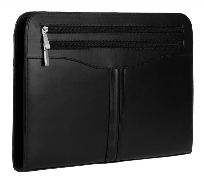 Папка из натуральной кожи.Обьемный внутренний карман,внутренний карман на молнии;1 плоский карман;визитница;карандашник;металическая планка с кольцами;блокнот.Ручка папочного типа.Увеличенная ширина папки за счет бортика на молнии.