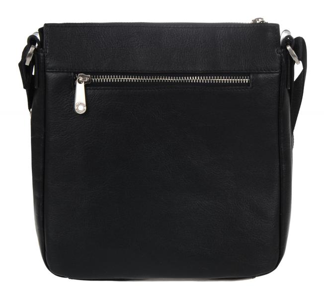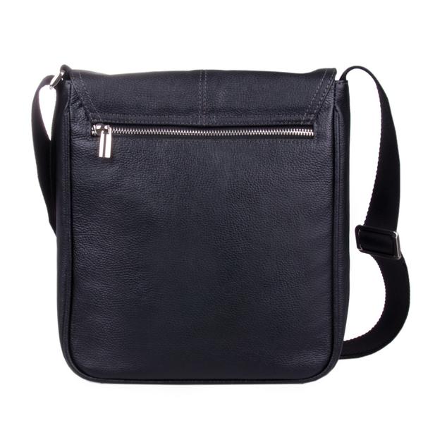 Закрывается на клапан с двумя магнитными кнопками. Внутри два отделения, разделенные встроенным карманом на молнии и потайной карман на молнии. Спереди под клапаном открытый карман, в клапане снаружи прорезной карман на молнии. Сзади снаружи прорезной карман на молнии. Регулируемый плечевой ремень.