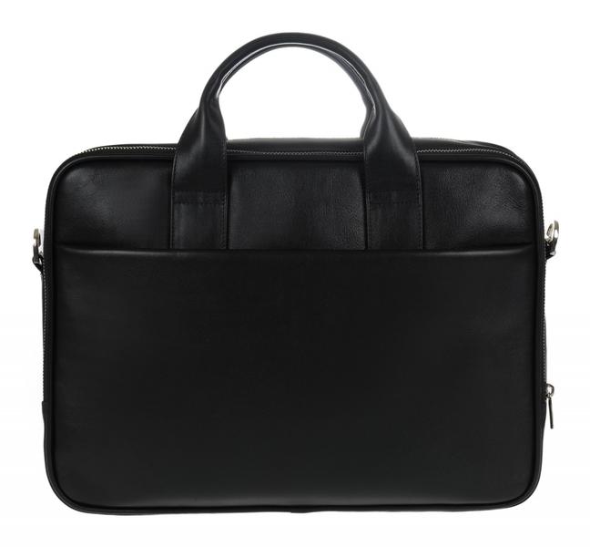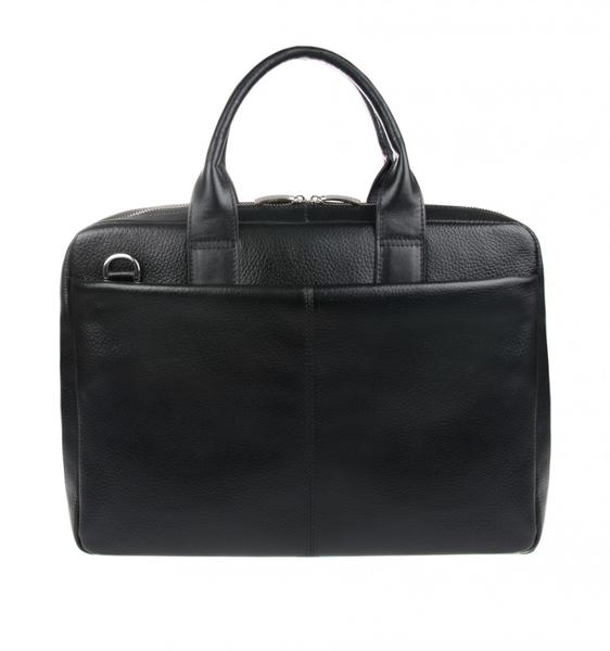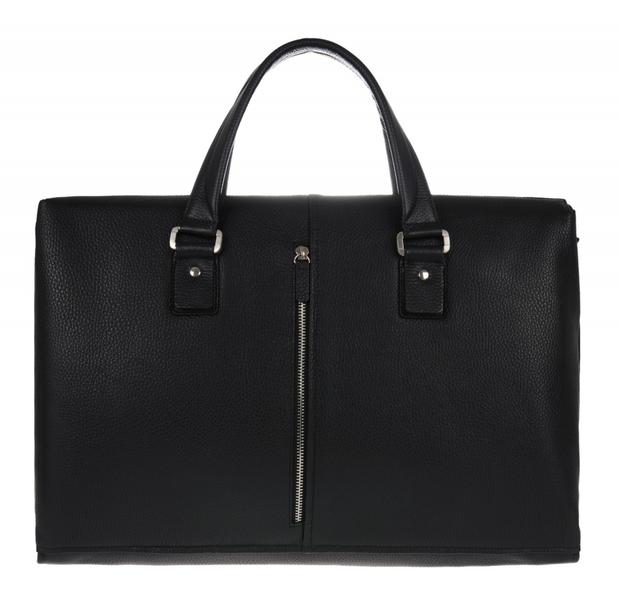 Сумка закрывается на молнию. Внутри одно основное отделение + отделение для ноутбука: вшитый карман на молнии + прорезной карман на молнии. Снаружи на задней стенке карман на молнии. Две ручки.