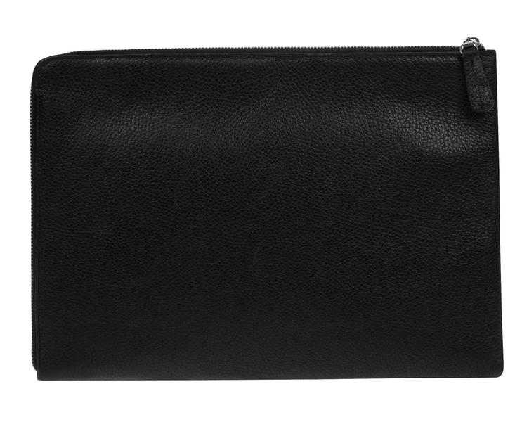 Папка на молнии. Внутри два отдела, разделенные встроенным отделением на молнии. На задней поверхности внутри карман без молнии, с другой стороны два кармана на молнии и без молнии. Снаружи карман без молнии. 2 ручки, которые убираются во внутрь.