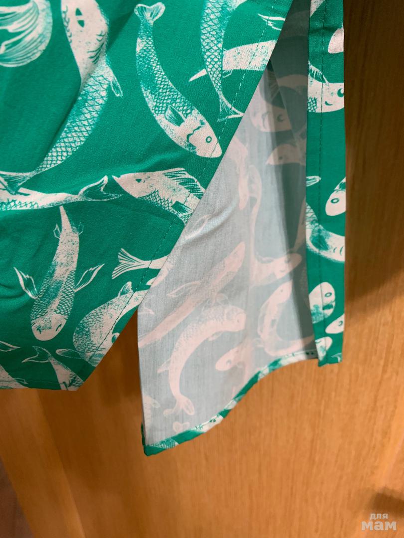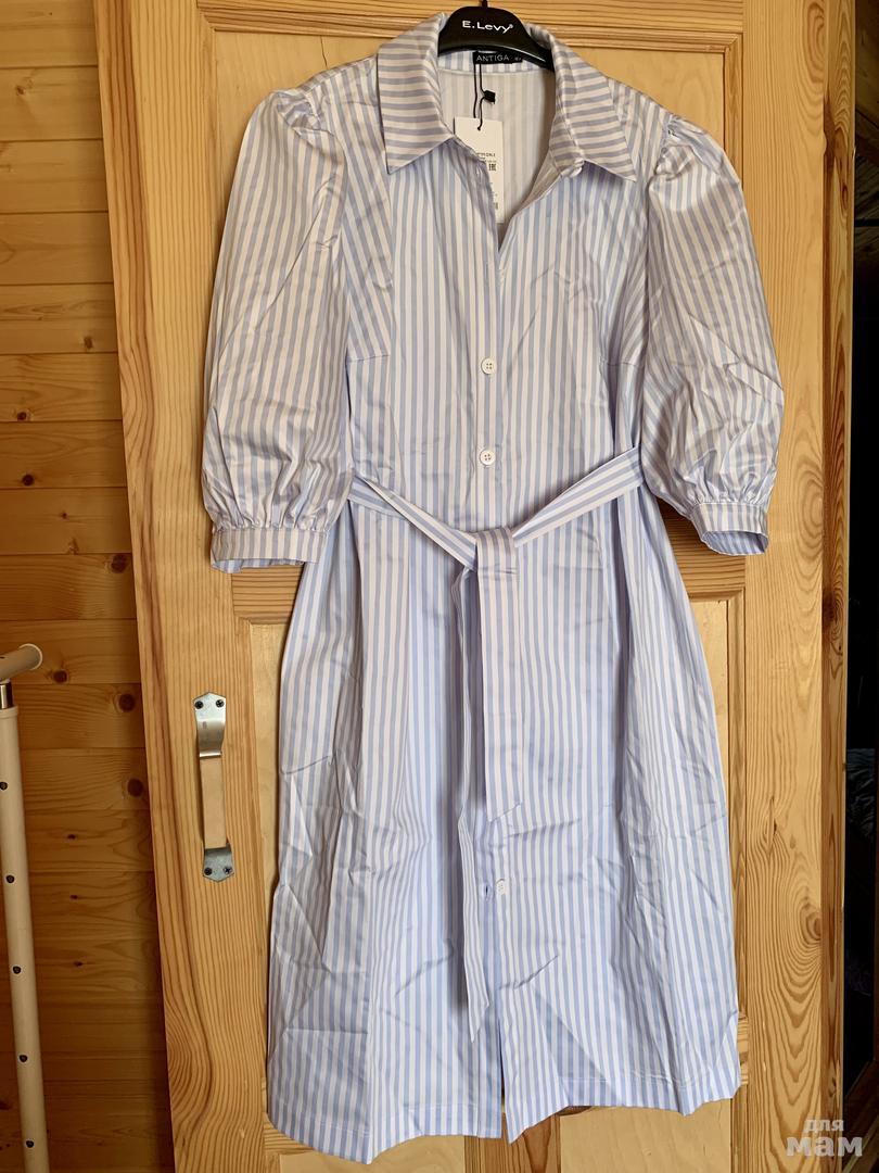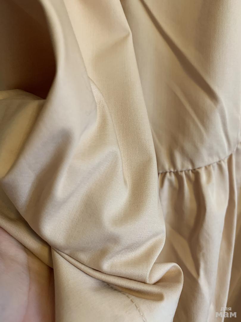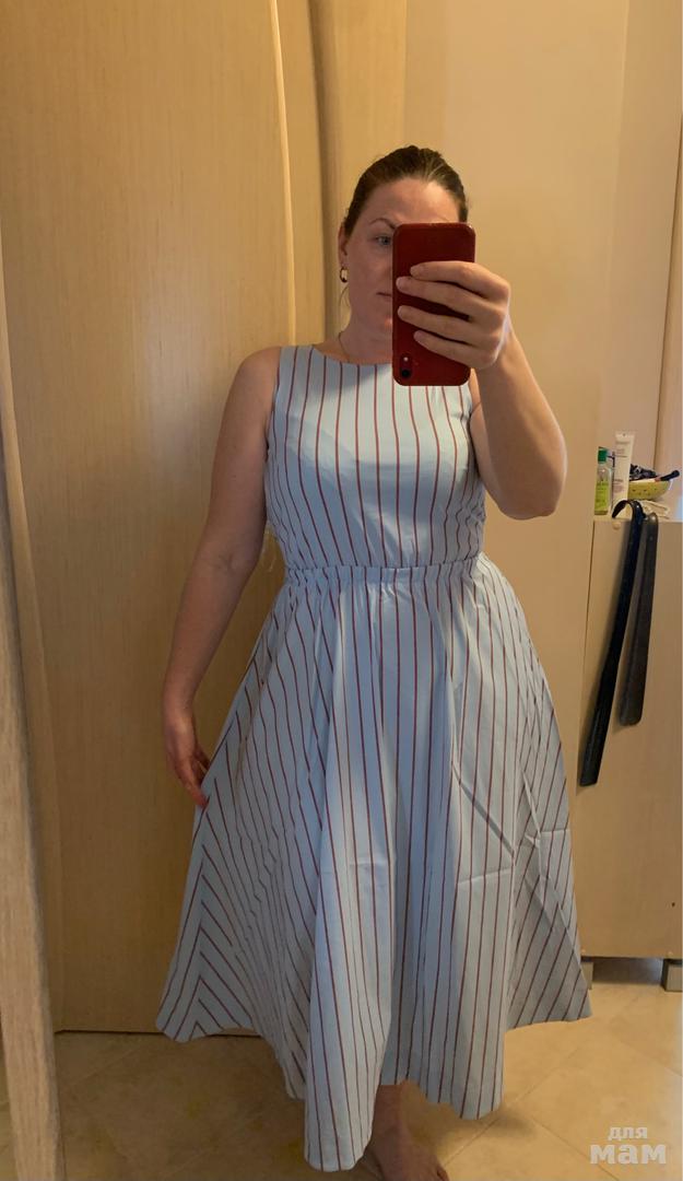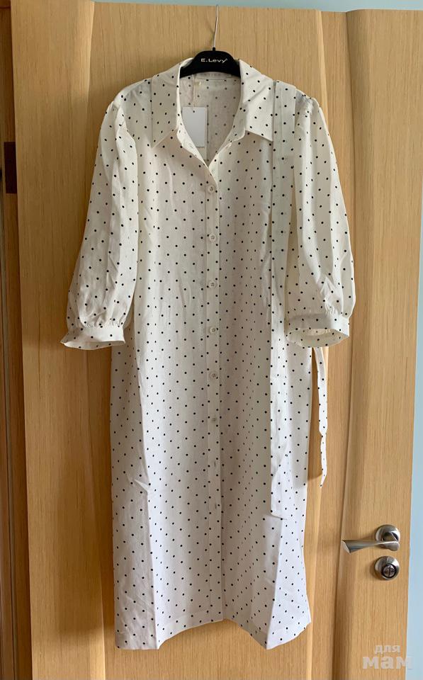 Хлопковое платье, красивое! На сайте на модели оно выше колена. Измерила длину полочки в самом коротком месте - примерно 0,98-1,0 м, вот прикидывайте как вам..