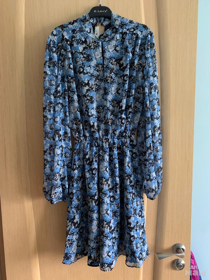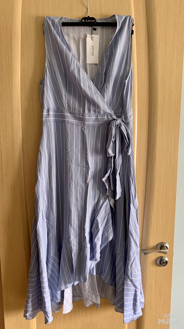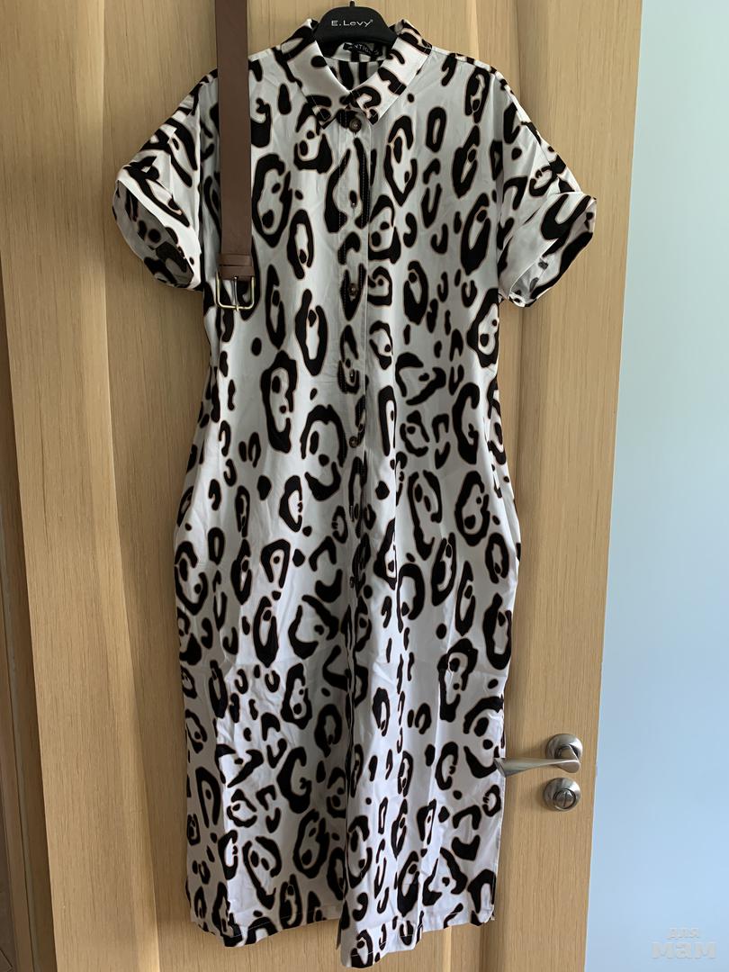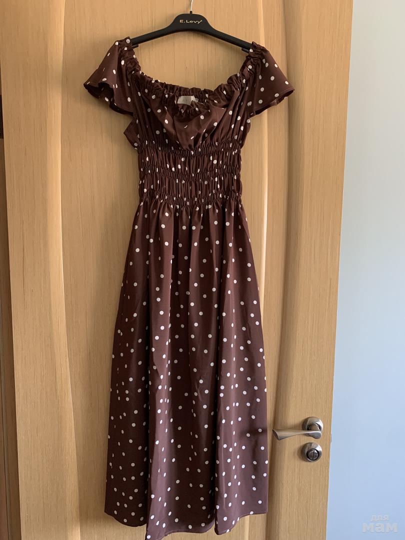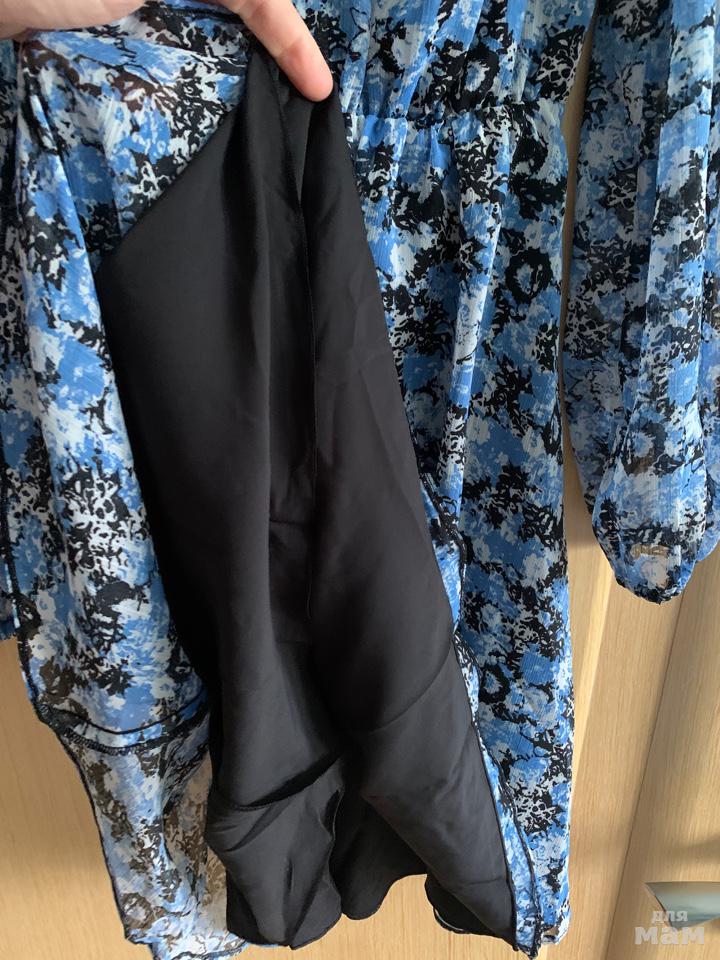 Хлопковое платье, красивое! На сайте на модели оно выше колена. Измерила длину полочки в самом коротком месте - примерно 0,98-1,0 м, вот прикидывайте как вам..