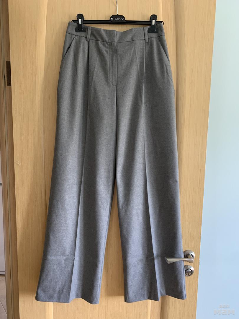 Костюм серого благородного цвета, жакет притален, брюки полная длина, немного клеш от колена