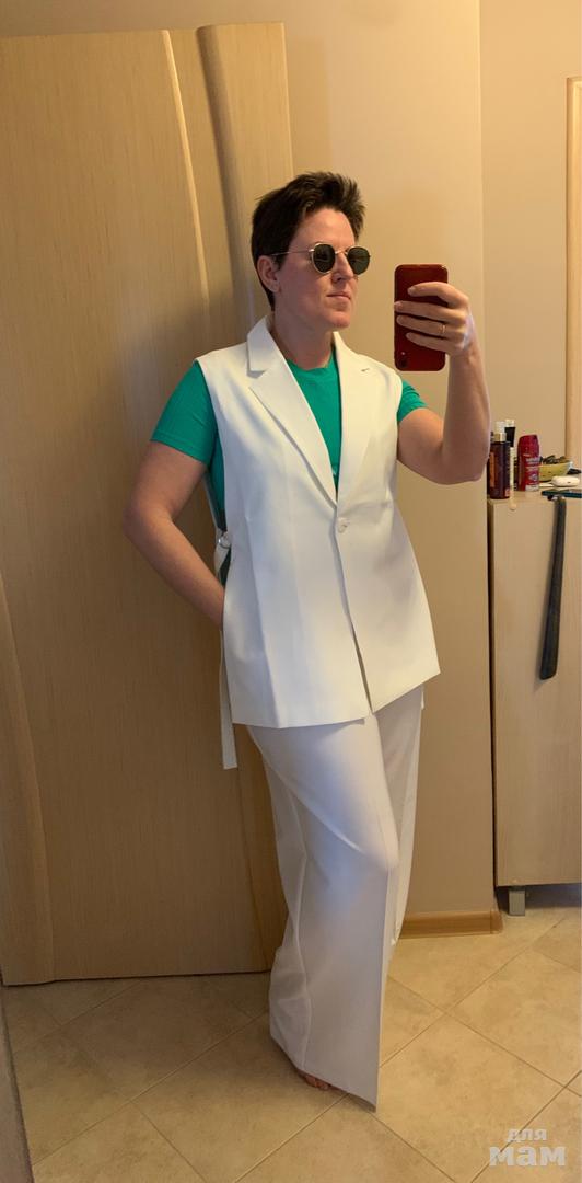 Костюм - жилет на подкладке, по бокам регулируется. Брюки широкие. Очень эффектно смотрится.