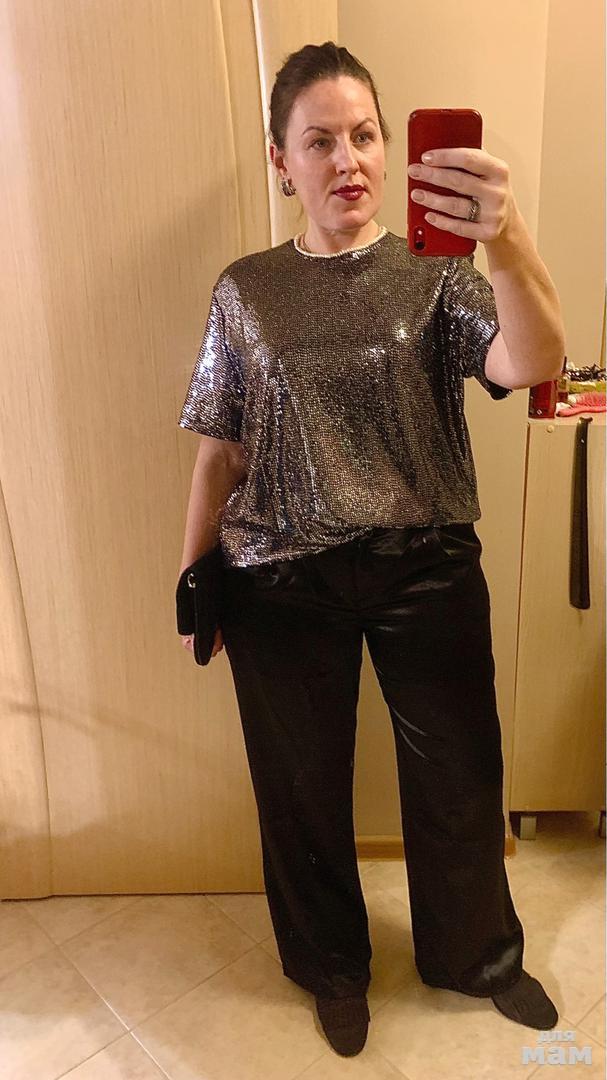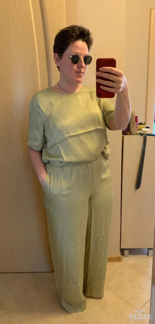 Классный комплект из струящейся ткани. Широкие брюки на резинке