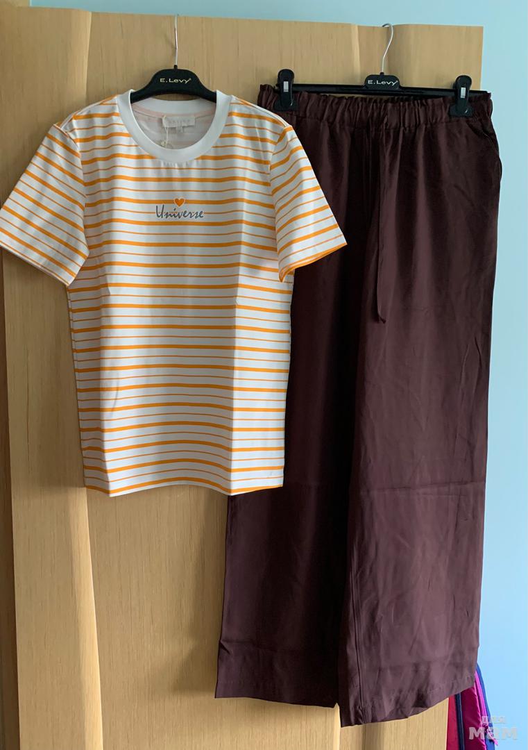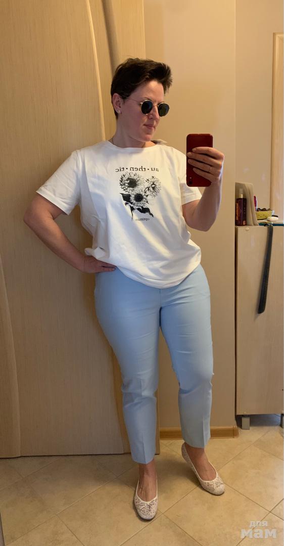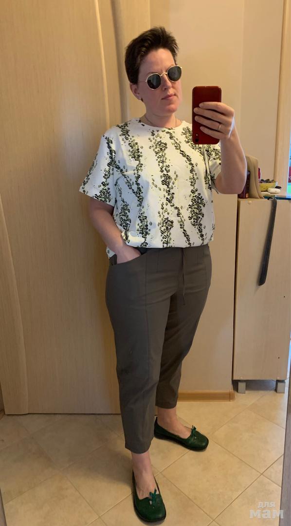 Футболка полуприталенная, брюки широкие на резинке, струящаяся ткань