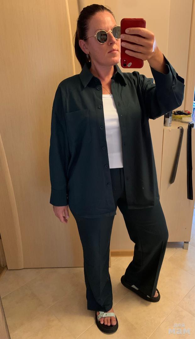 Мятный костюм из легкой весенней ткани. Брюки прямые. Или с универсальными вискозными сарафанами Anti///га.