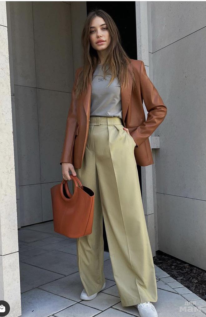 Модные брюки бананами с выточками внизу и стильный жакет! Фисташковый цвет, на сайте более верный. Выделка ткани под рогожку. Легкие