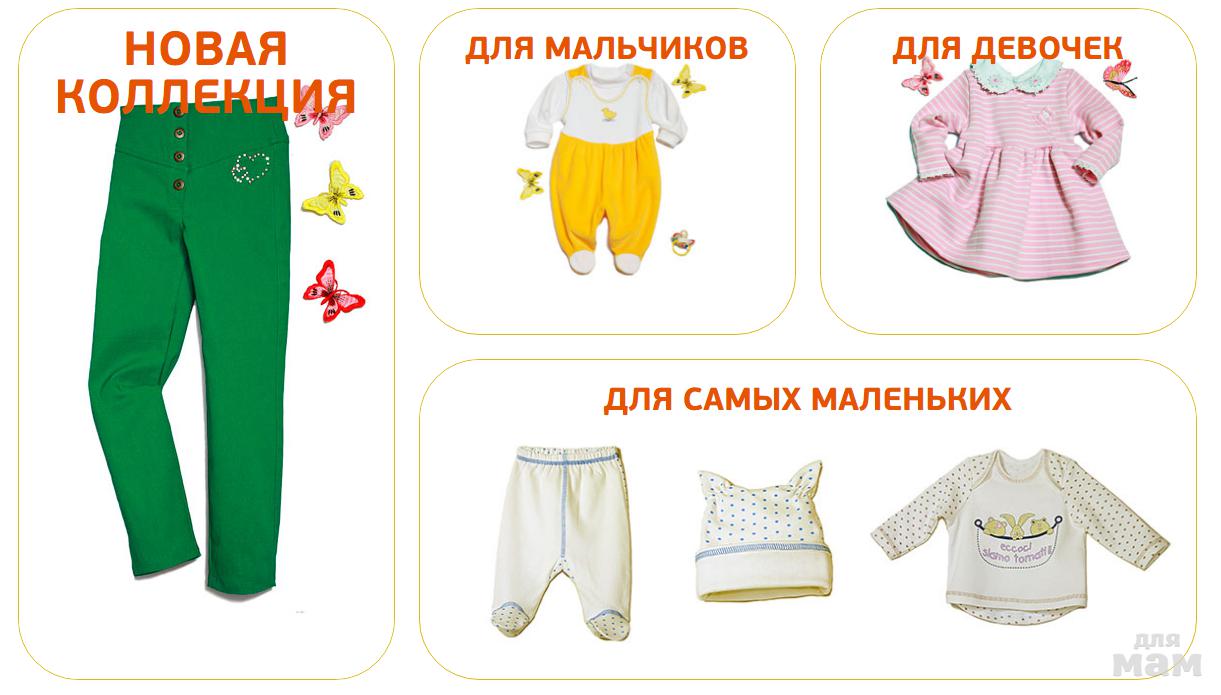 Здесь Вы найдете все, что необходимо малышам в повседневной жизни: от ползунков для новорожденных до стильных платьев и маек ребятам постарше. Каталог содержит десятки предложений по каждой позиции, позволяющих удовлетворить запросы всех, даже самых взыскательных, модниц и модников, а также их родителей.