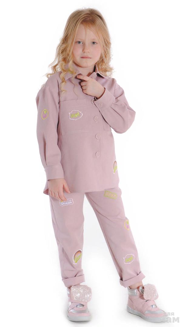 джинс хлопок 97%, эластан 3%,рубашка- застежка пуговицы, накладные карманы, вышивка, нашивки,брюки - на поясе регулируемая резинка,застежка- молния, пуговица,карманы с отрезным бочком,сзади накладные карманы