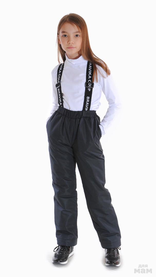 пояс -резинка, застежка - молния, пуговица,карманы прорезные на молнии,съемные регулируемые бретели,низ брюк сбоку молния, защита от снега на резинке,светоотражающий кант