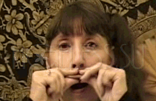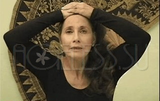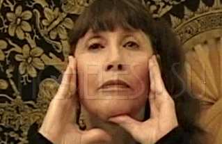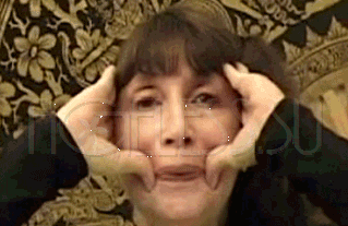 Слегка улыбнитесь и напрягите уголки рта в «узелки». Приложите к ним пальцы. Начинайте разводить руки в форме полукруга, представьте что «узелки» удлиняются и следуют за руками. Удерживая напряжение выполняйте движение до счета 40.