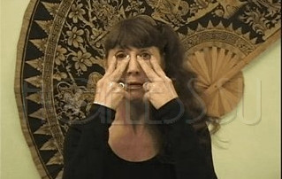 Это упражнение практически полностью повторяет подобное у К. Мадджио. Принцип работы тот же. Полагаю, что именно оно и использовано Кэролайн. Приложить подушечки пальцев на внешний и внутренний уголки глаз, плотно прижать. Сощуривать глаза при помощи нижнего века и расслаблять их. Сделать 10 сощуриваний, на 10-м – задержаться до счета 10, расслабиться.