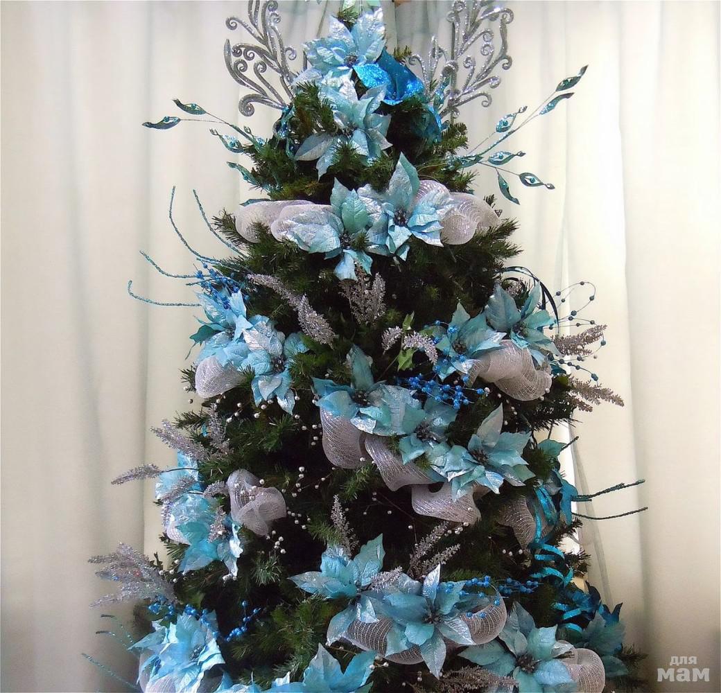 Каждый новый год мы покупаем своей зеленой красавице разные наряды. В этом году она у нас красно-золотая. Очень любим украшать цветами! Поскольку в семье нас три девочки))