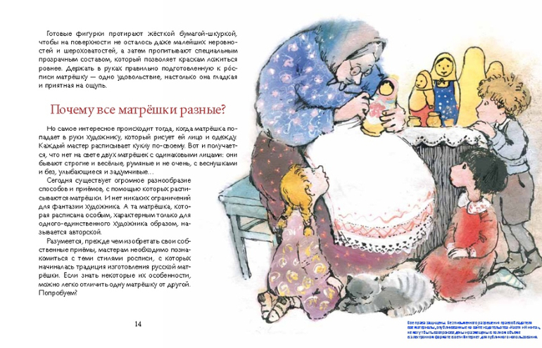 Русская матрёшка стала одним из символов нашей страны — наряду с самоваром, балалайкой и медведем. Когда появилась эта необыкновенная игрушка? Кто её придумал? Почему она так называется? Как её вытачивают и расписывают? Почему все матрёшки разные? Сколько куколок может быть внутри? И какая матрёшка самая большая? Ответы на все вопросы вы найдёте в этой книге.
