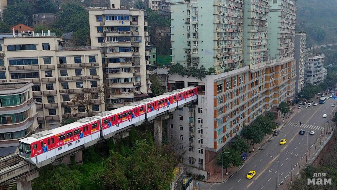 Дело в том, что в расположенном в центральной части Китая Чунцине очень плотная застройка. При возведении монорельсовой дороги на пути архитекторов оказалась строящаяся 19-этажка, которую, как выяснилось, никак не объехать, поскольку с одной стороны крутые холмы, с другой — река. А пустить часть дороги под землей не позволили особенности грунта.