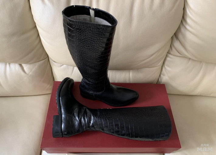 Очень Красивые Стильные брендовые Сапожки из натуральной кожи с крокодиловым тиснением.