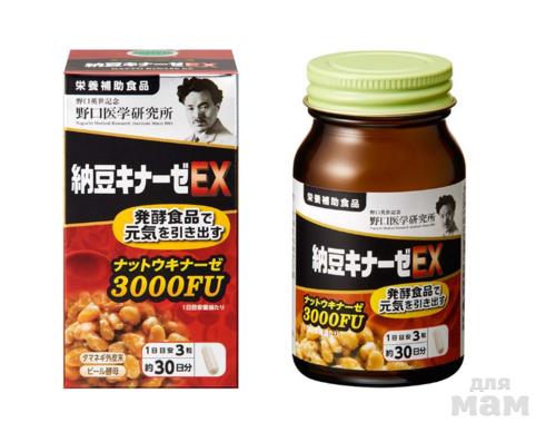 NOGUCHI Nattokinase EX Наттокиназа 3000 FU для сердца и сосудов применяют для лечения и профилактики сердечно-сосудистых заболеваний.