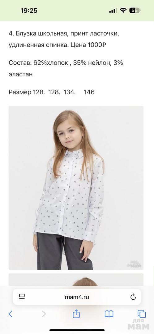 4. Блузка школьная, принт ласточки, удлиненная спинка. Цена 1000₽