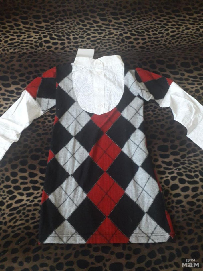 Туника обманка школьная блузка с пуловером, 128, новая, клетка серо-красная. 800 руб.
