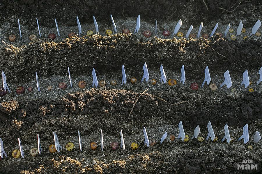 Каждой луковке своя табличка с названием и номерком. И запись в тетрадь.
