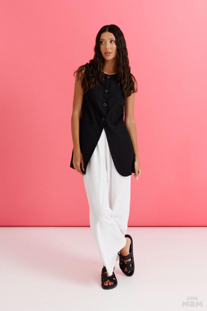 Жилет полуприлегающего силуэта выполнен из льняной ткани черного цвета.