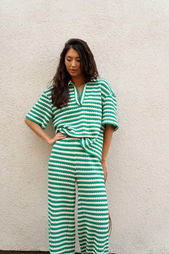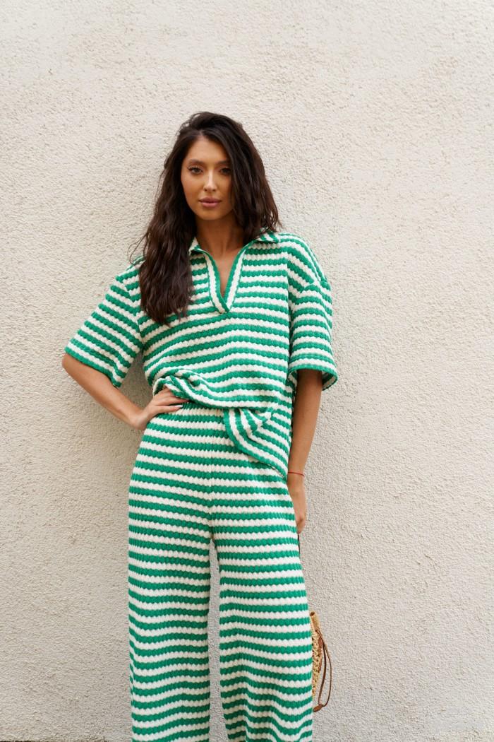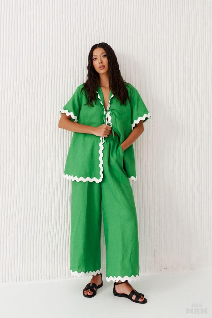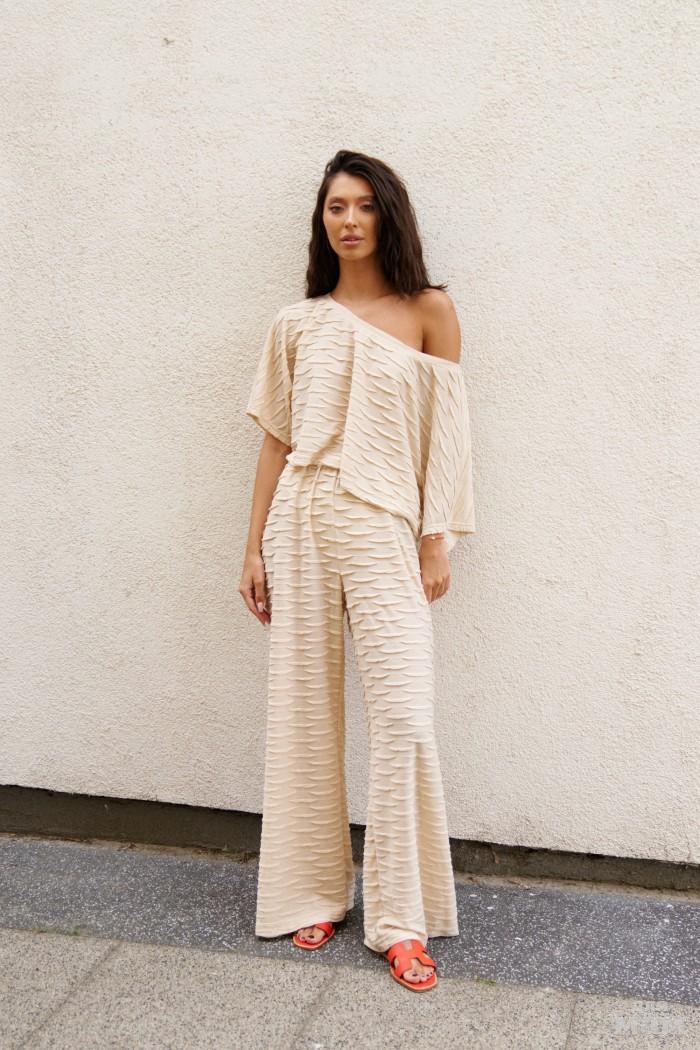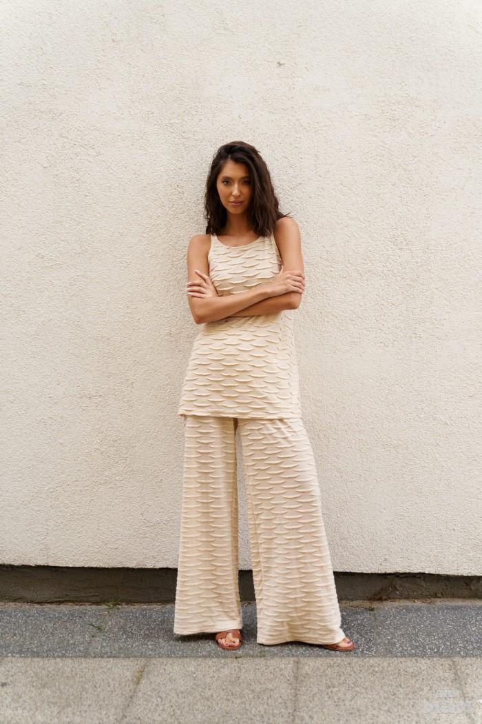 Комплект состоит из джепера и брюк выполнен из полупрозрачной ткани.