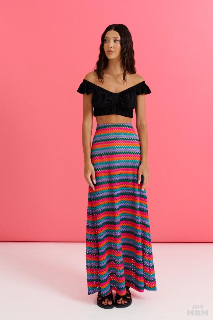 Характеристики: полуприлегающий силуэт, подкладка, пояс на резинке на подгибе. Длина юбки 40 см.